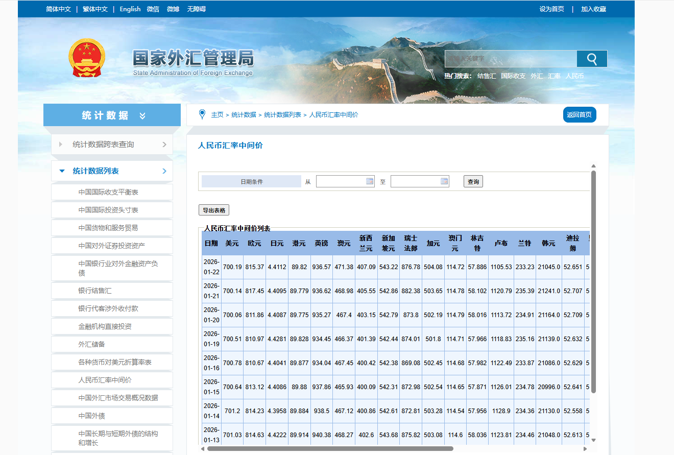 国家外汇管理局官网 “统计数据 - 人民币汇率中间价” 栏目可查询每日有效汇率中间价,企业可根据出口日期对应的取值日期,精准获取合规汇率数据,确保增值税申报时销售额折算的准确性。